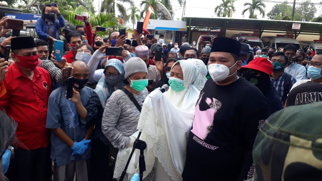 Usai melaksanakan salat jenazah Ferza dengan tegas menyampaikan berjanji akan melanjutkan perjuangan sang ayah.