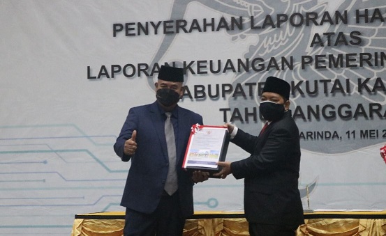 Bupati Kukar Edi Damansyah menerima langsung piagam WTP dari Kepala BPK Perwakilan Provinsi Kaltim Dadek Nandemar. Acara serah terima ini dilakukan di ruang Auditorium Lantai II Kantor BPK Perwakilan Provinsi Kaltim, Samarinda (11/5/2022).