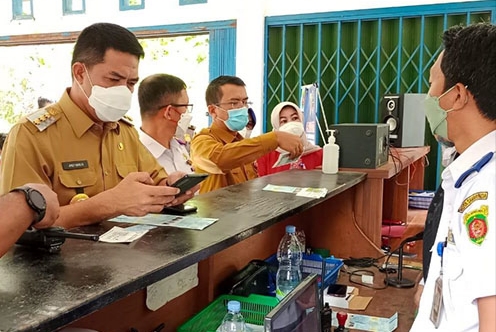 Samarinda, linimasa.co – Andi Harun launching e-KIR berupa pembayaran non tunai pada pelayanan pengujian kendaraan bermotor (PKB) di kantor UPTD PKB Dishub Samarinda di jalan HM Ardans, Selasa (15/2/2022).