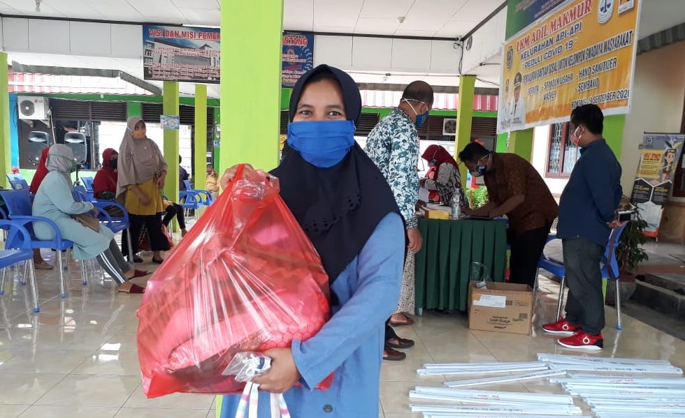 “Sembakonya itu berupa beras 5kg, minyak goreng 2 liter, Gula 1kg dan telur 1 piring,” ungkap Handiga via selular Senin (12/10/20)
