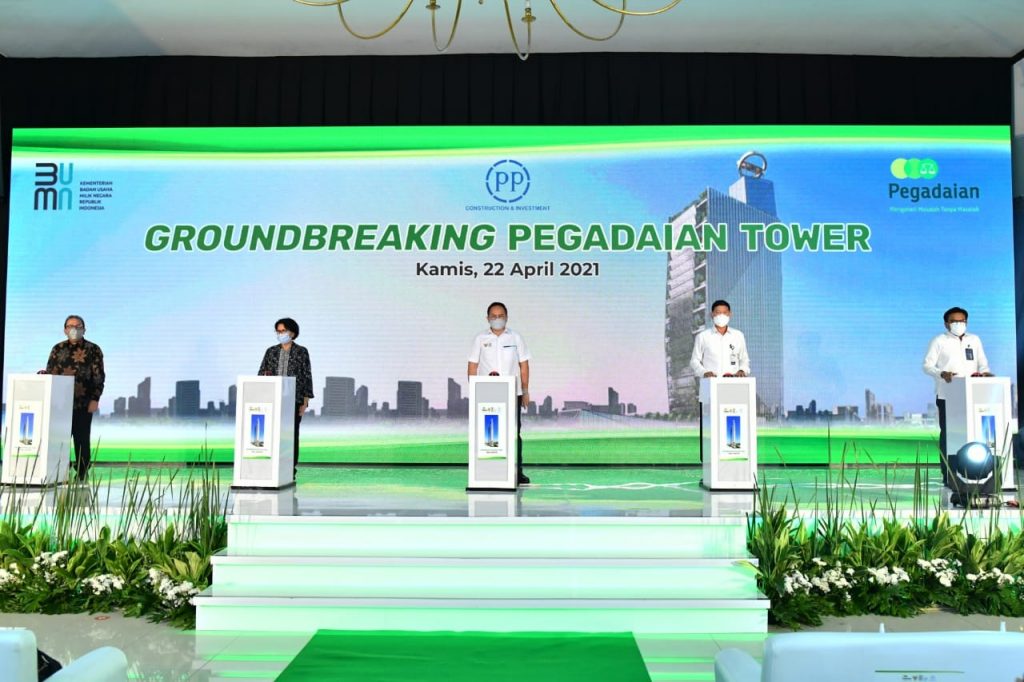 Seremonial Groundbreaking gedung tersebut dilakukan pada Kamis (22/04) oleh Wakil Menteri BUMN II Kartika Wirjoatmodjo, didampingi Komisaris Utama Pegadaian Loto Srinaita Ginting, Direktur Utama Pegadaian Kuswiyoto, Direktur Utama PT PP (Persero) Tbk. Novel Arsyad dan Direktur Umum Pegadaian Gunawan Sulistyo.