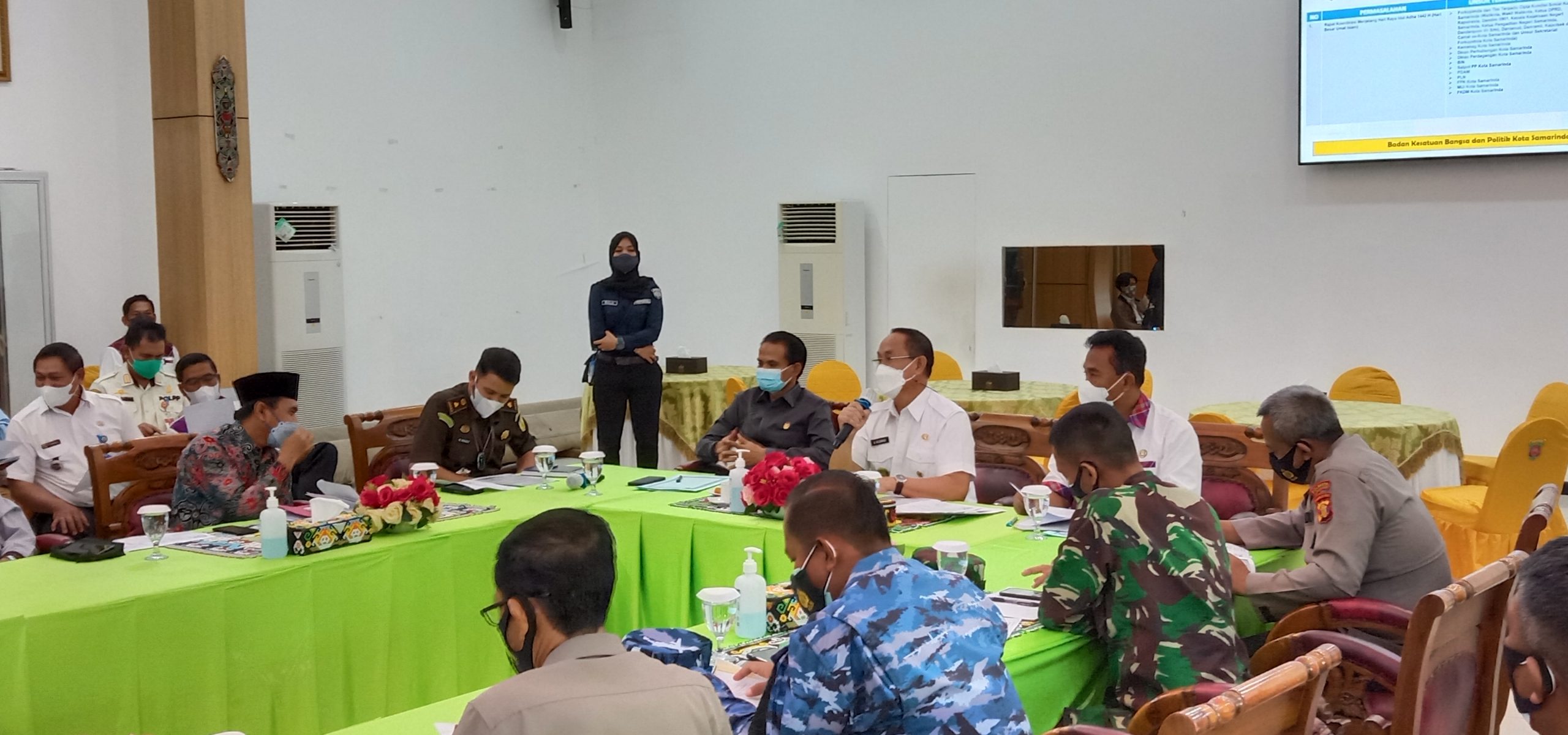 Samarinda, linimasa.co – Menjelang Idul Adha tahun 2021 Pemkot Samarinda mengadakan Pertemuan forum koordinasi pimpinan daerah (FORKOPIMDA) dan tim terpadu cipta kondisi sosial, ketentraman dan ketertiban umum dan perlindungan masyarakat kota tahun 2021 di aula rumah jabatan Walikota Samarinda Jl. S. Parman, Rabu (14/7/2021)