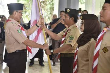 Pelepasan Kontingen Lomba Keterampilan Pramuka Penggalang tingkat Provinsi Kaltim ditandai dengan Penyerahan bendera dari Ketua Kwarcab Gerakan Pramuka Kota Samarinda kepada Pembina pendamping.