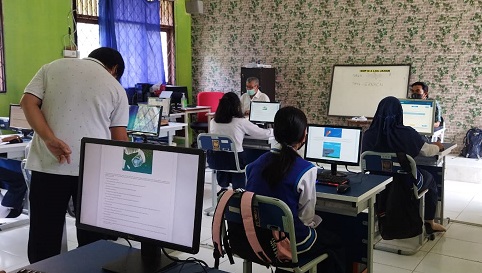 “kami juga menyediakan gawai bagi beberapa peserta didik di tiap kelas yang memang sangat membutuhkan agar dapat tetap melaksanakan kegiatan belajar-mengajar,” tutur Wulan.