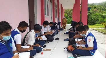 Belajar santai tapi serius di teras sekolah